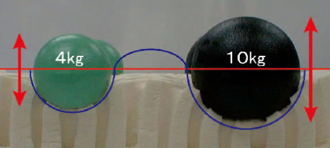 加えた重さと同じ比率だけ沈み、その圧力と同じ力で反発するのが正反発です。
