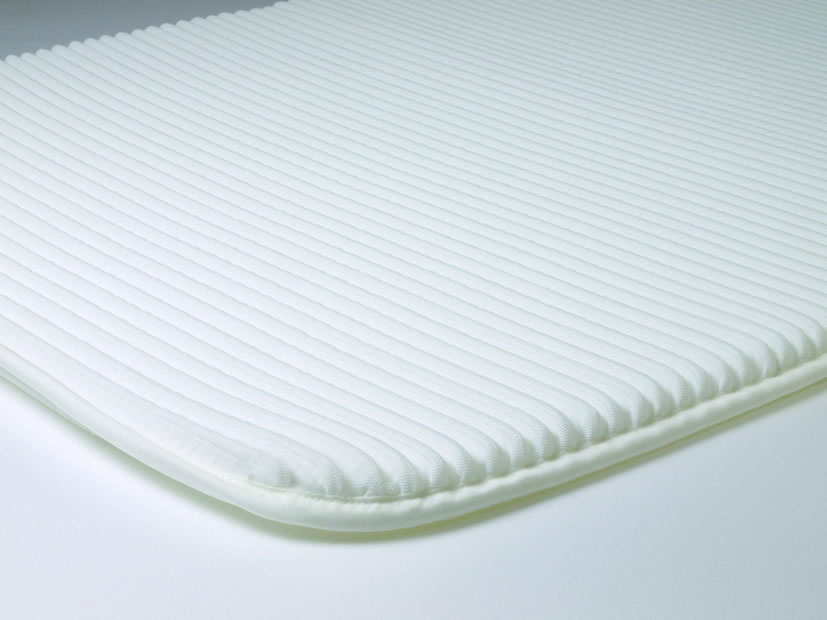 - 10万回の圧縮試験でも、約90%の反発力を維持、寝返り等の圧力変化にも回復性が良く柔軟に対応します。また、繊維充填率が4%と低いので、ほこりが付きにくく、ダニも住みにくい構造になっています。