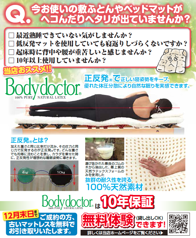 ボディドクターは、ヨーロッパで約百年もの歴史を持つラテックスフォームを使用。