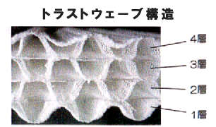 - 多層構造の大きな空気層により、特に「通気性」に優れているため、夏は涼しく感じます。また、本体「トラス構造」をカバーやシーツ等で包み、空気の流れを止めることにより、冬は暖かく感じます。