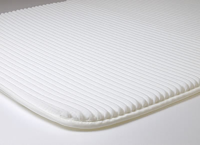 - 10万回の圧縮試験でも、約90%の反発力を維持、寝返り等の圧力変化にも回復性が良く柔軟に対応します。また、繊維充填率が4%と低いので、ほこりが付きにくく、ダニも住みにくい構造になっています。