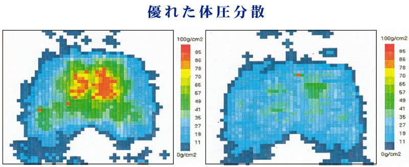 だから、安定感が充分にありながら、まるで、浮遊するような体圧分散効果が得られます。